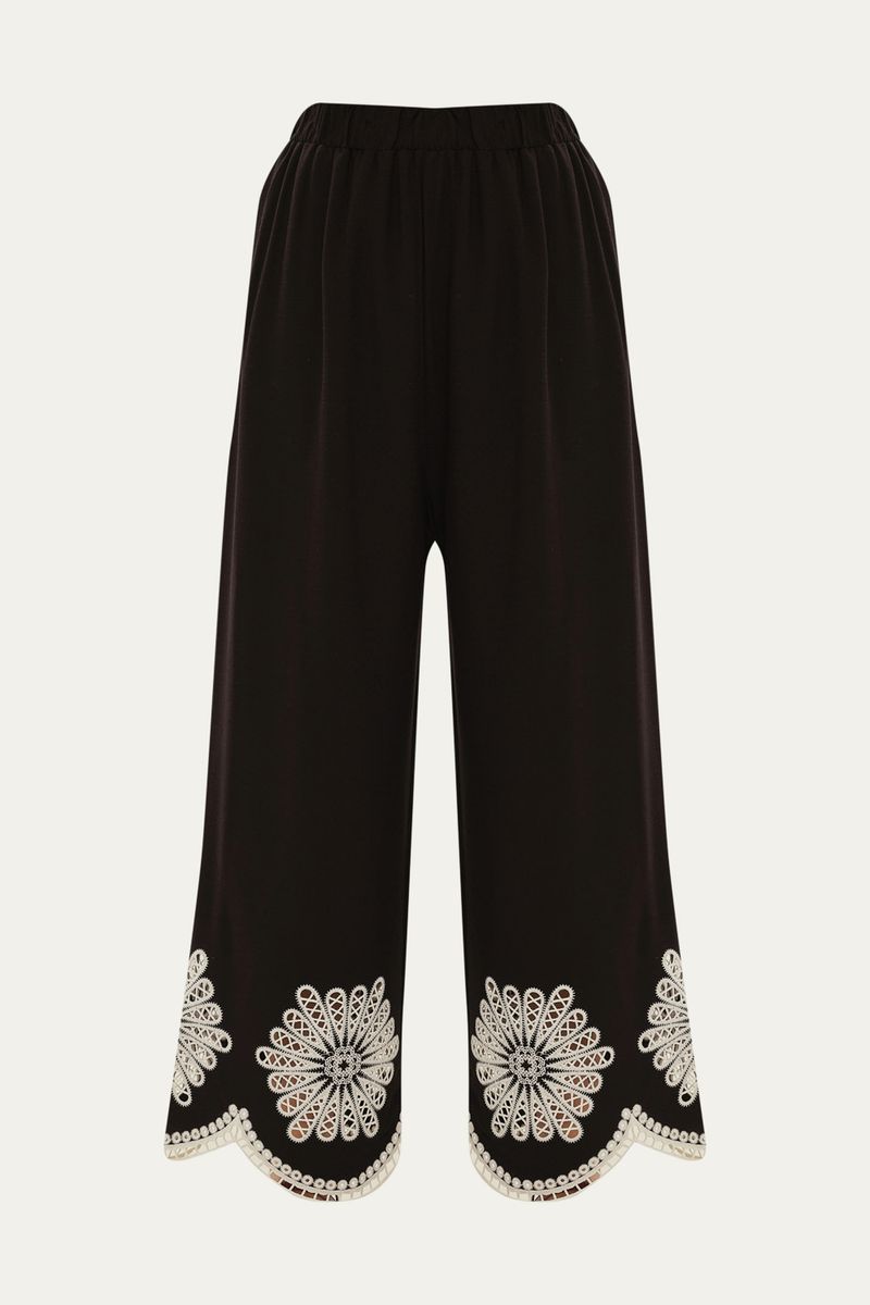 A Calça Flor em tecido plano de viscose e poliamida, oferece um caimento reto impecável e conforto duradouro. Seu cós com elástico embutido garante um ajuste perfeito na cintura e detalhe de bordado na barra, ideal para quem busca elegância e praticidade no dia a dia.