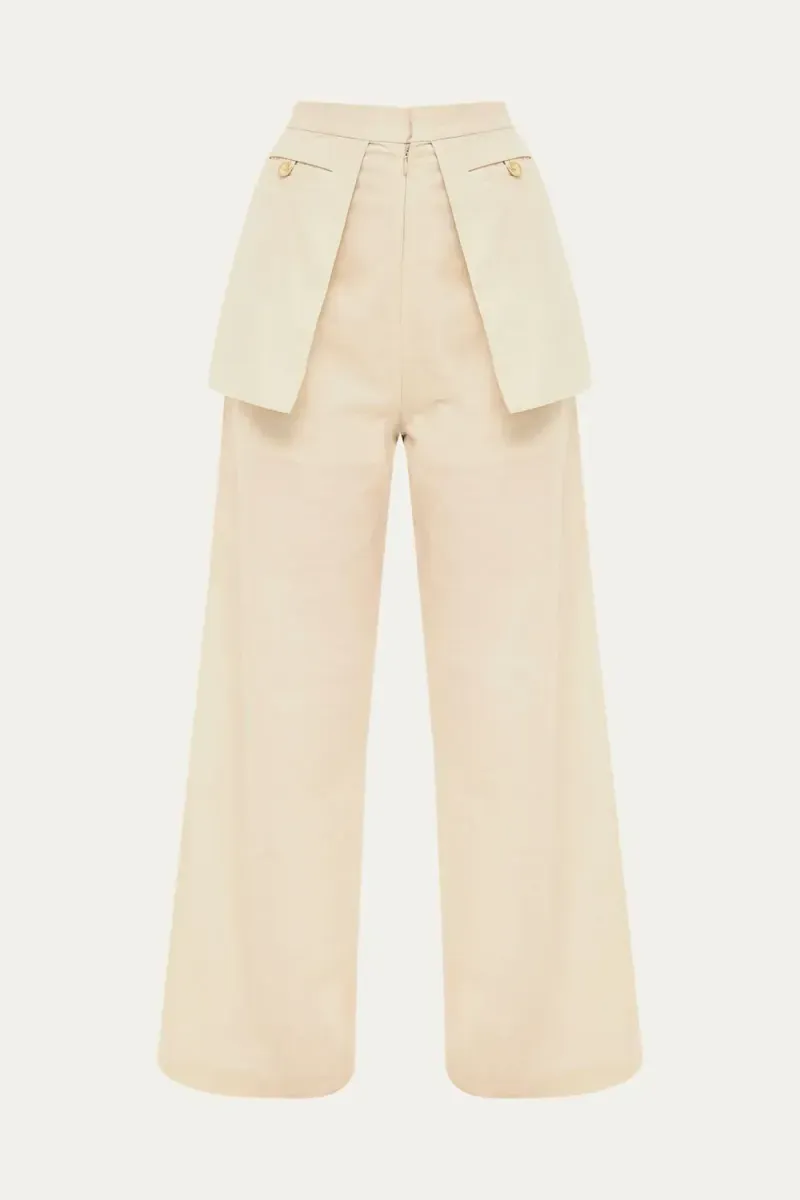 A Calça Pantalona Linho Cairo Lilly Sarti revela uma essência de sofisticação e bem-estar. Elaborada a partir de uma nobre mistura de algodão e linho, esta peça distingue-se por sua modelagem ampla, bolso frontal decorativo e fechamento em zíper, elementos que conferem um caimento impecável e uma elegância que transcende as tendências.