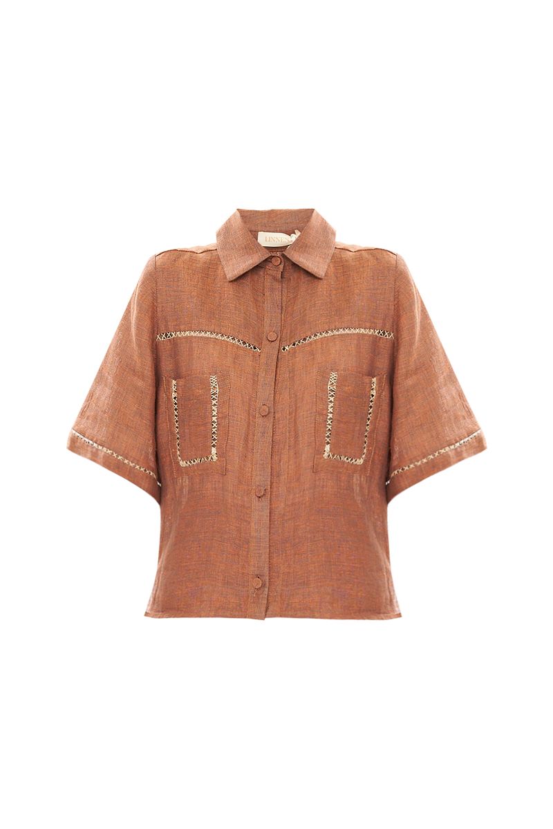 Camisa Curta Emelie Linnen - LARANJA