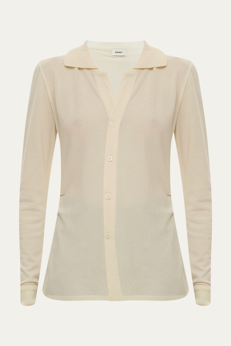 A camisa justa em tricot Egrey, oferece uma silhueta refinada e um toque delicado. Confeccionada em uma mescla de viscose e poliamida, esta peça é um convite à elegância sutil, ideal para quem valoriza o conforto sem abrir mão da distinção.