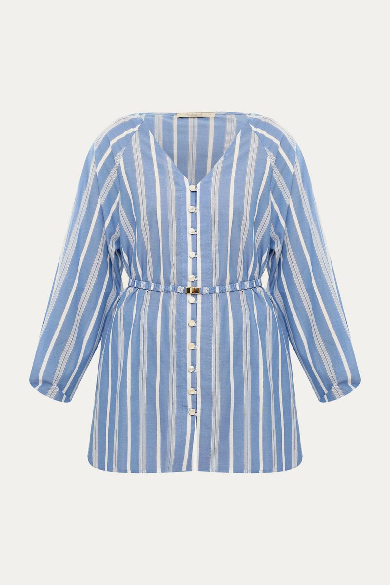 Esta Camisa Manga Longa Algodon combina a pureza do algodão com um design elegante, apresentando mangas longas e um prático fechamento em botões com aselhas. Acompanhada por um cinto em elástico, esta peça oferece versatilidade e um toque de sofisticação para o seu guarda-roupa.