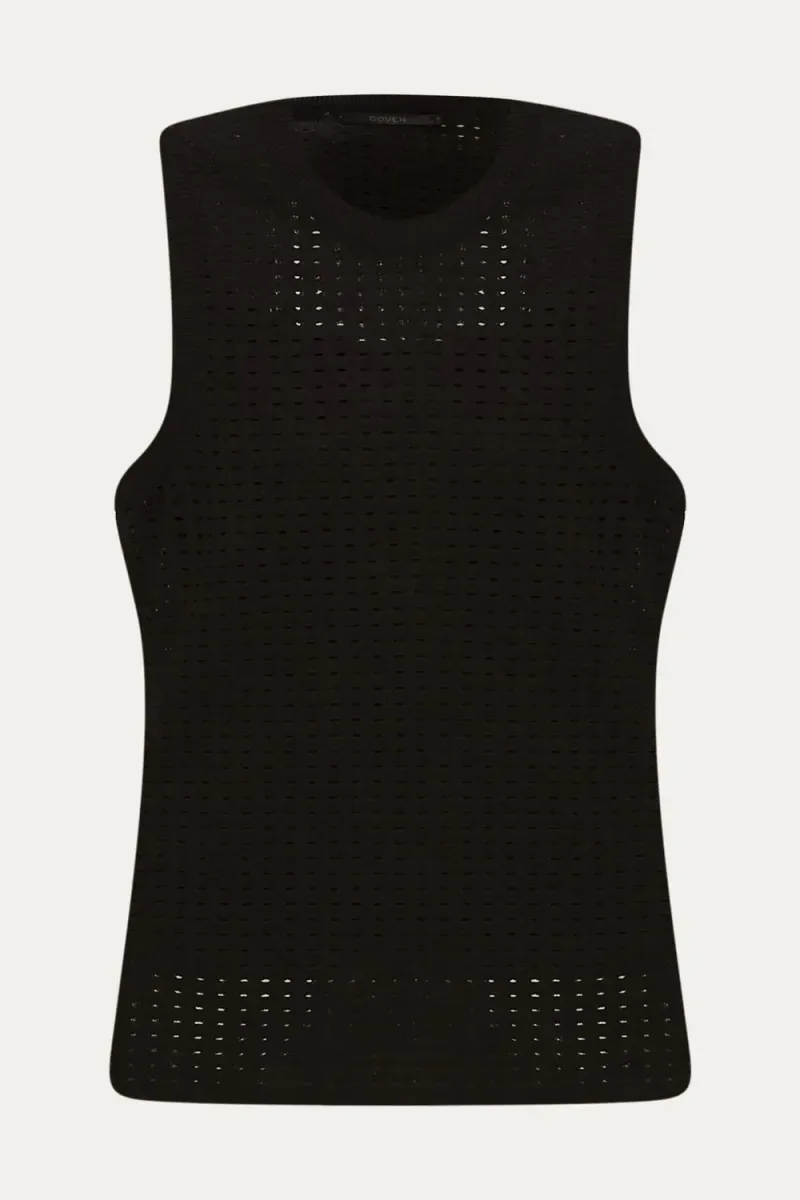 A Regata Tricô Tela Monocromática Coven é uma expressão de design contemporâneo, confeccionada em uma sofisticada mistura de viscose e poliamida. Sua trama em tela confere à peça um toque de modernidade e leveza, ideal para quem busca conforto com estilo.