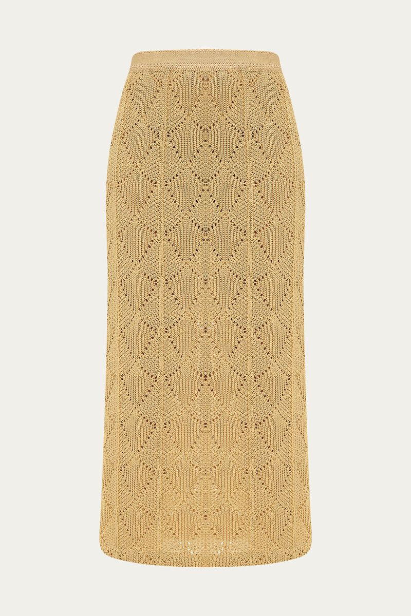 Saia midi em tricot de ráfia