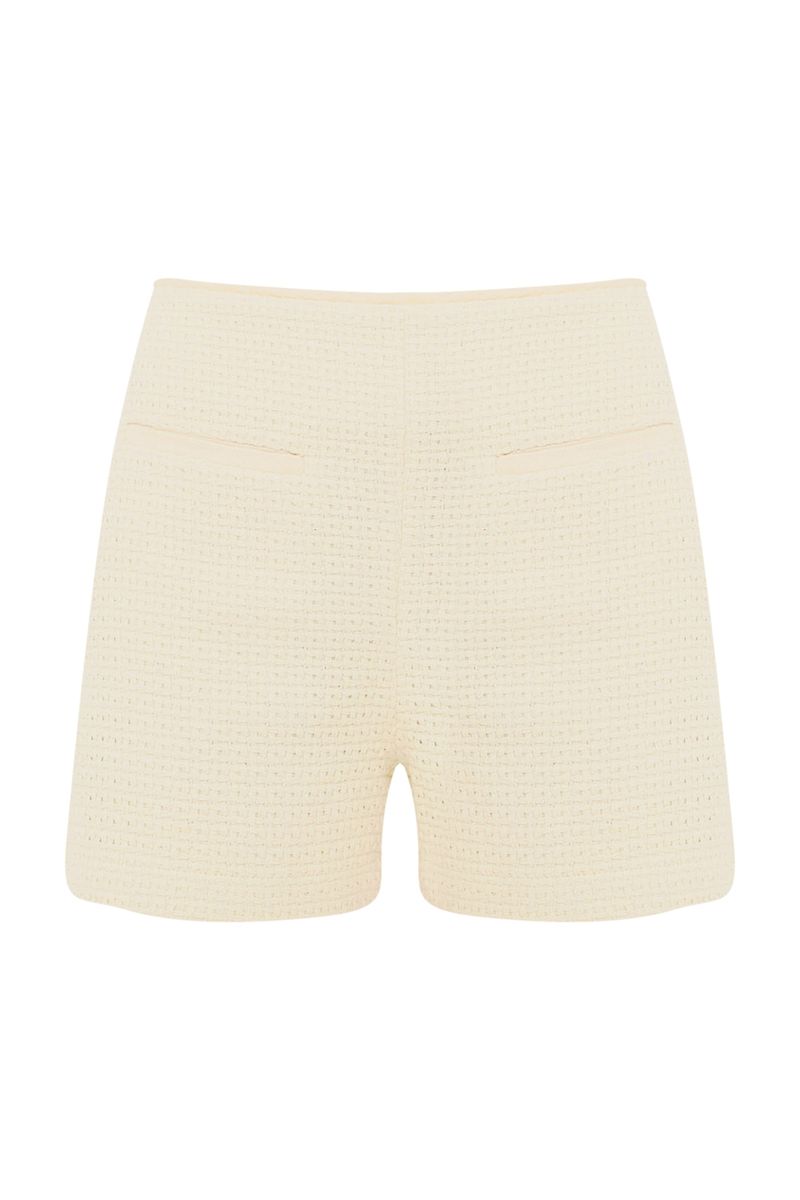 Shorts em tweed com toque de linho.