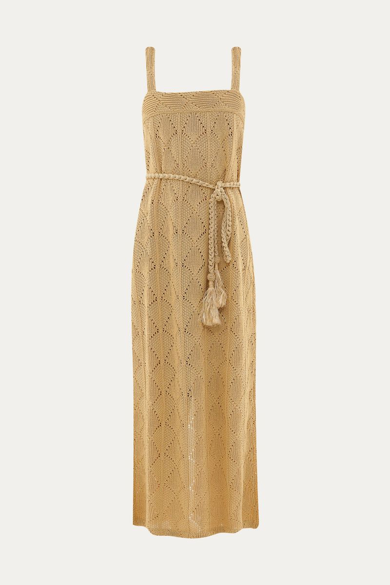 Vestido midi em tricot de ráfia