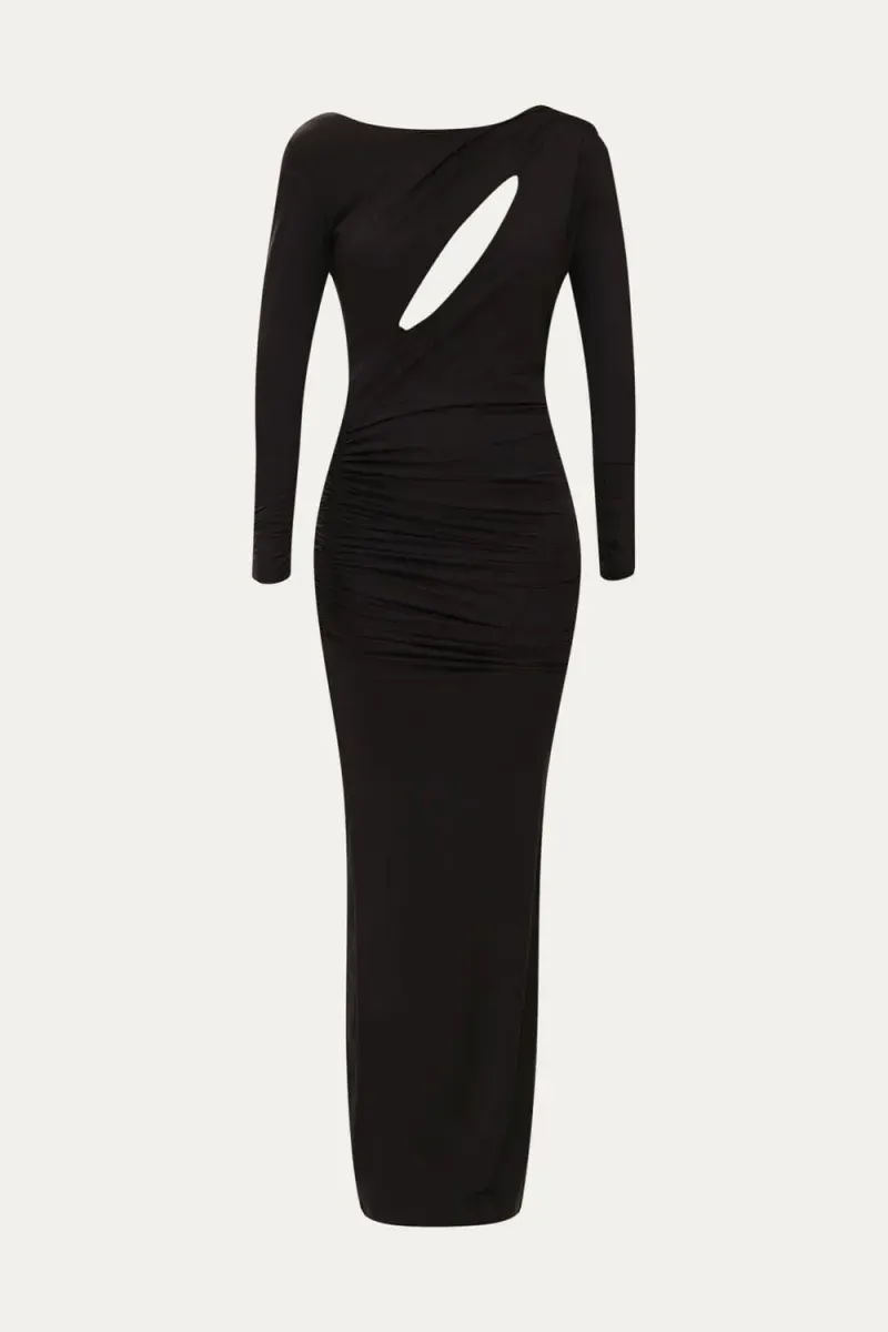 Confeccionado em uma malha sofisticada de poliamida e elastano, este vestido midi da Lilly Sarti exibe um caimento fluido e um toque suave. Seu design contemporâneo é realçado por mangas longas e sutis detalhes cut out, oferecendo uma peça de elegância discreta e conforto refinado.