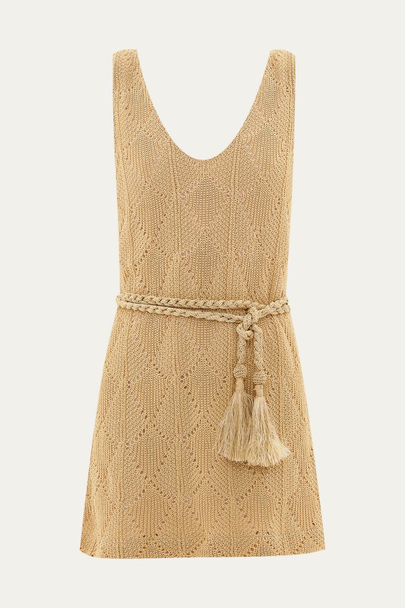 Vestido mini em tricot de ráfia