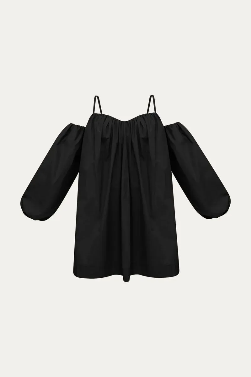 O Vestido Mini Fabrille, confeccionado em algodão, apresenta um design distintivo com alças finas, decote coração e mangas volumosas aplicadas lateralmente, criando uma silhueta moderna e elegante. Esta peça única oferece conforto e um toque de sofisticação para diversas ocasiões.
