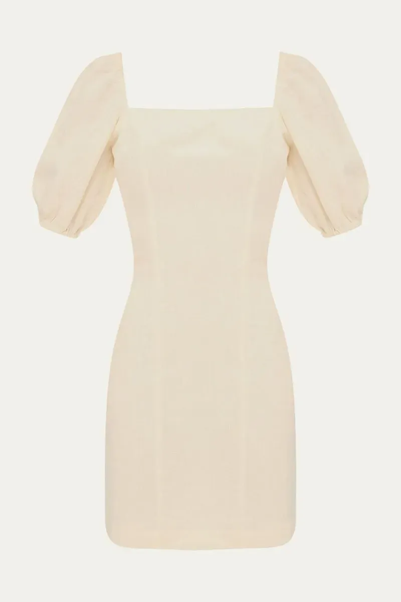 O Vestido Mini Roxane, confeccionado em uma sofisticada mistura de rami e algodão, apresenta um design encantador com decote quadrado e mangas bufantes. Seus recortes no corpo e o decote costas com amarração adicionam um toque de elegância e feminilidade, proporcionando um visual leve e moderno.